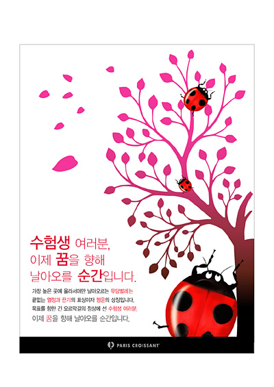 수험생 열러분......이런 메인 텍스트 부분이 딱딱한 느낌이 드는데요... 글씨체를 보면서 " 아..나도 날아가고싶다..날수있겠구나.." 그런 느낌이 난다면 좋을꺼같아용...